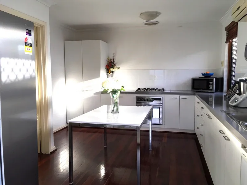 Three bedroom, one bath, built in robes in master bedroom, floor boards throughout, well appointed, kitchen with dishwasher, split system air conditionings, bathroom with bath, double in line remote garage, two large entertaining patio top rear, shed with workshop attached, garden shed, easy care gardens.