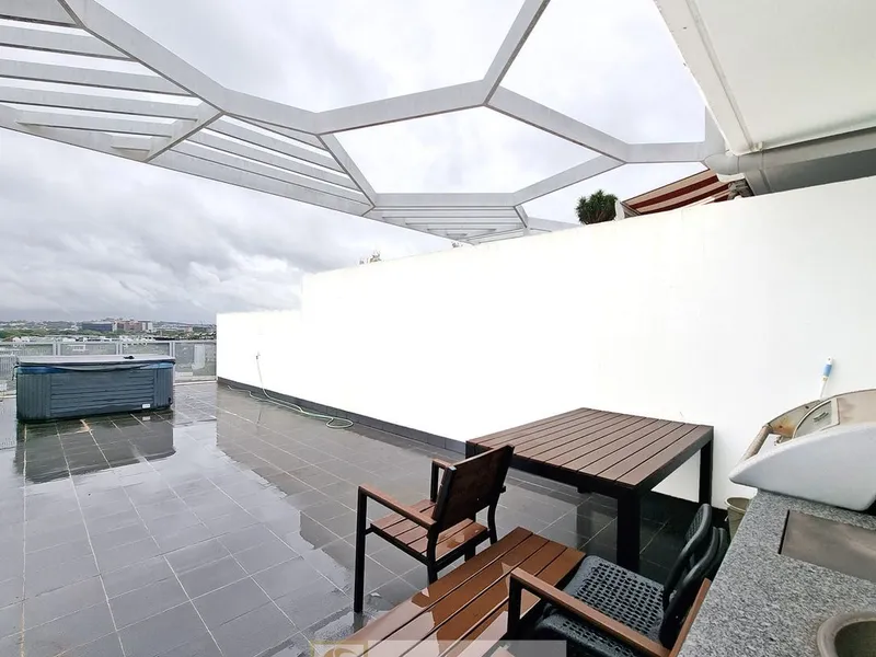 -Private and sunny entertaining balcony with privacy shutters
