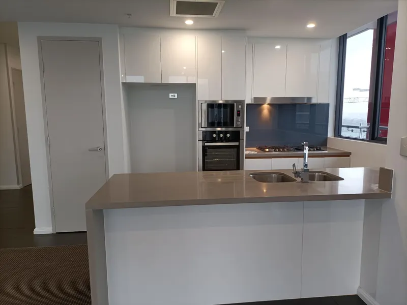 Open-plan living and dining areas flow seamlessly to a covered, sunlit balcony, perfect for relaxed indoor–outdoor living. The contemporary stone kitchen features stainless steel appliances, induction cooking, a dishwasher and ample storage. Both generously sized bedrooms include built-in robes and enjoy access to their own private balconies, with the main bedroom complemented by a private ensuite.