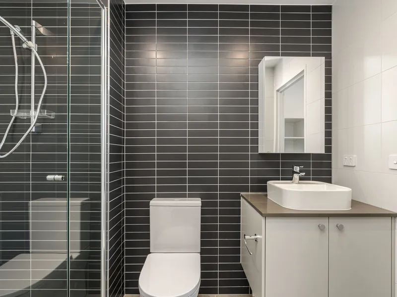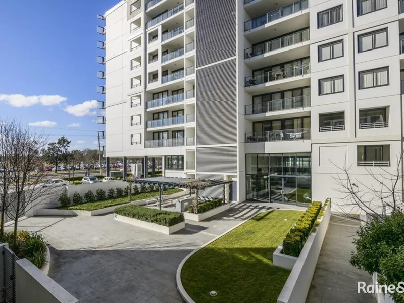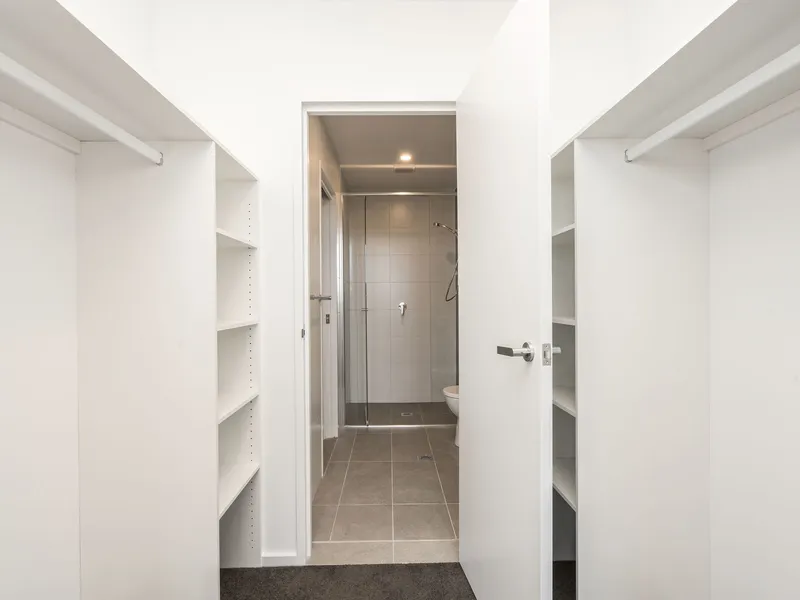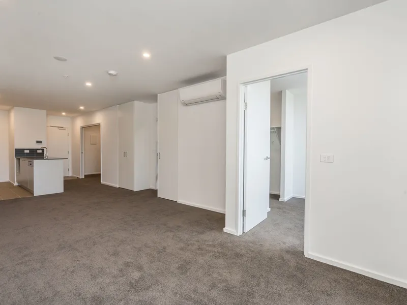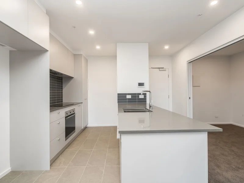 Featuring a spacious, light filled and open plan living and dining space with split system air conditioning and direct private, covered balcony access. The kitchen overlooks the living space, offering stone benchtops and quality appliances including a semi integrated dishwasher and induction cooktop.
