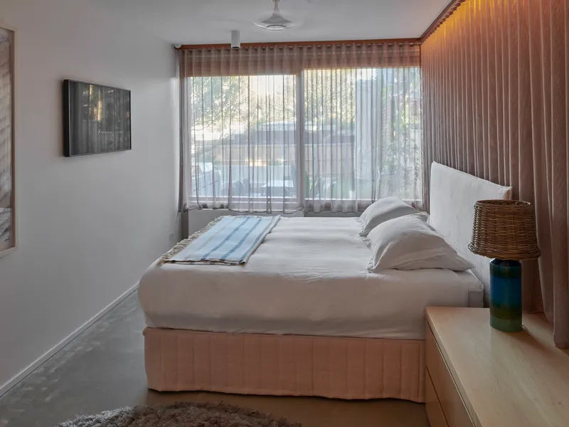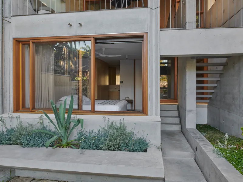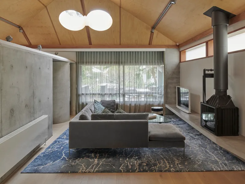 This is reimagining of the traditional Watsons Bay weatherboard cottage from the 1850s. The historical significance of the surrounding area has influenced the recasting of this derelict fisherman's cottage into a contemporary permanent home. Whilst modest in size, the building provides for the needs of its inhabitants without a fuss, providing its occupants with a sense of calm and repose. Considerations of light, material, and form were key in developing the interior, which is ordered through an off form concrete barrier.