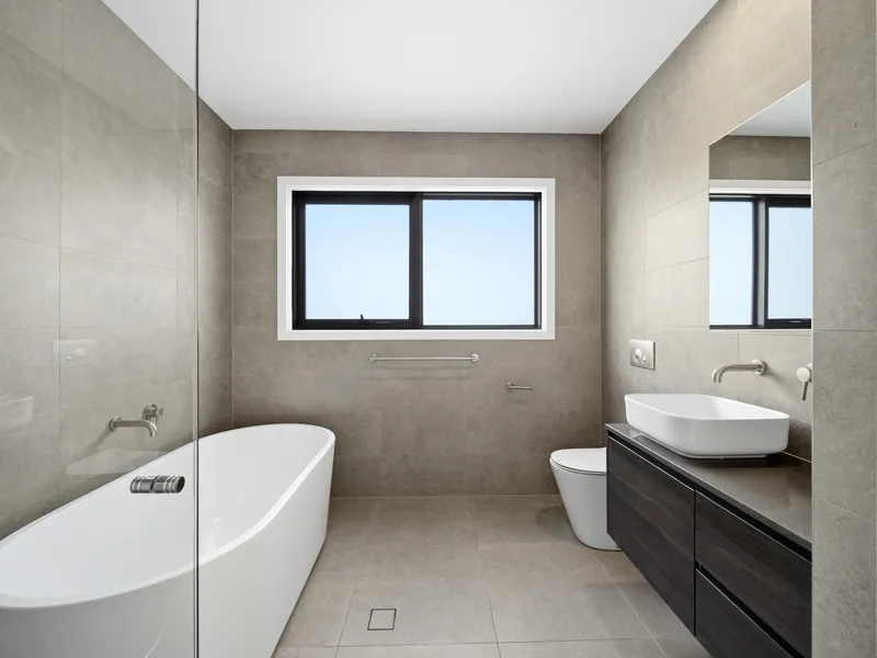This unique residence features 3 spacious bedrooms with the main bedroom on the ground floor, featuring a walk-in robe which opens to the large ensuite with double vanity, in-floor heating & floor to ceiling tiles. The open plan kitchen, living & dining area filled with natural light will be the grand centre of your new home & looks out to the private courtyard, creating a great space for entertaining family & friends.