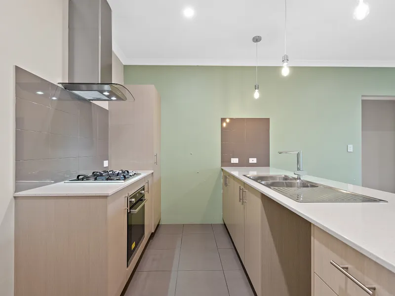 Inside, the home showcases modern décor complemented by stylish feature lighting, creating a warm and contemporary feel throughout. The spacious master suite is privately positioned and includes its own ensuite, while the three additional bedrooms are all well-sized and fitted with robes, providing plenty of storage for the whole family.