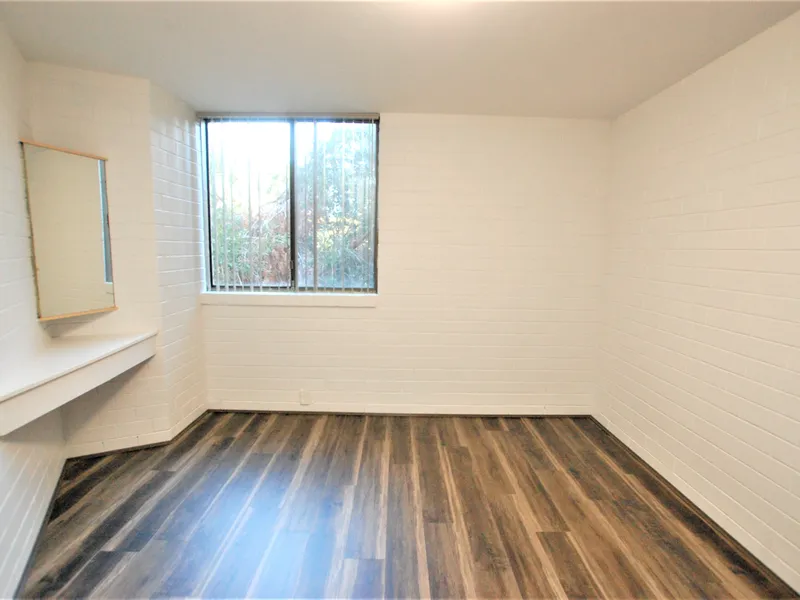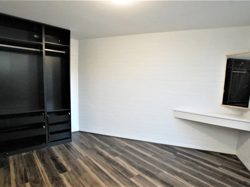 -2 bedrooms with cupboards and vinyl look floorboards