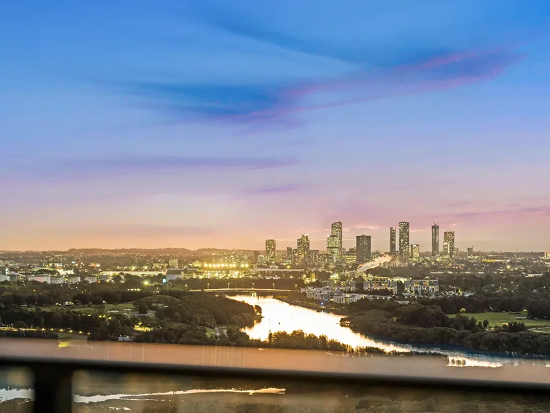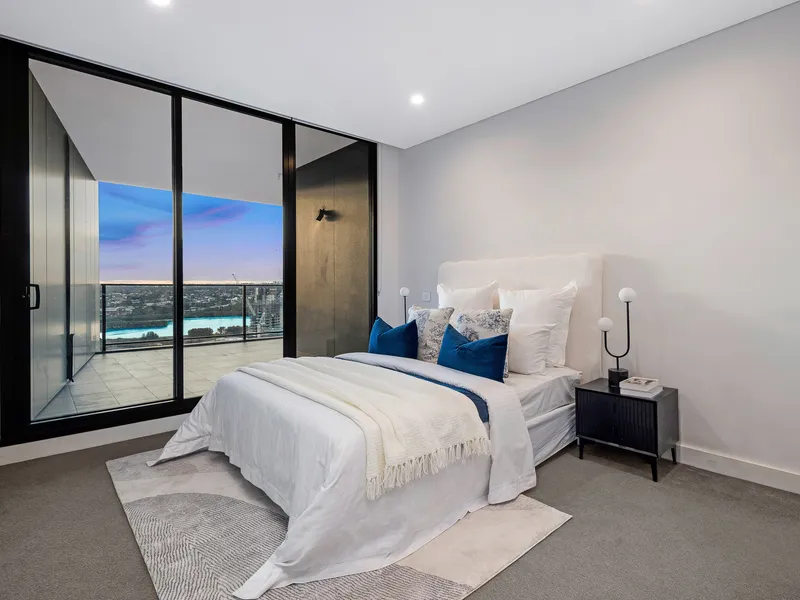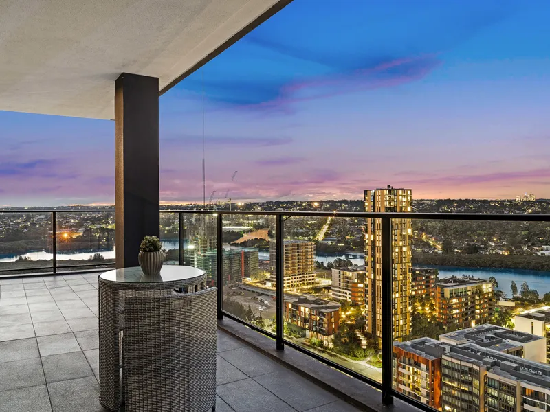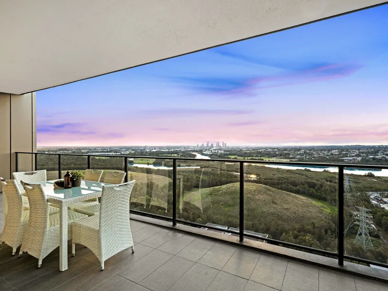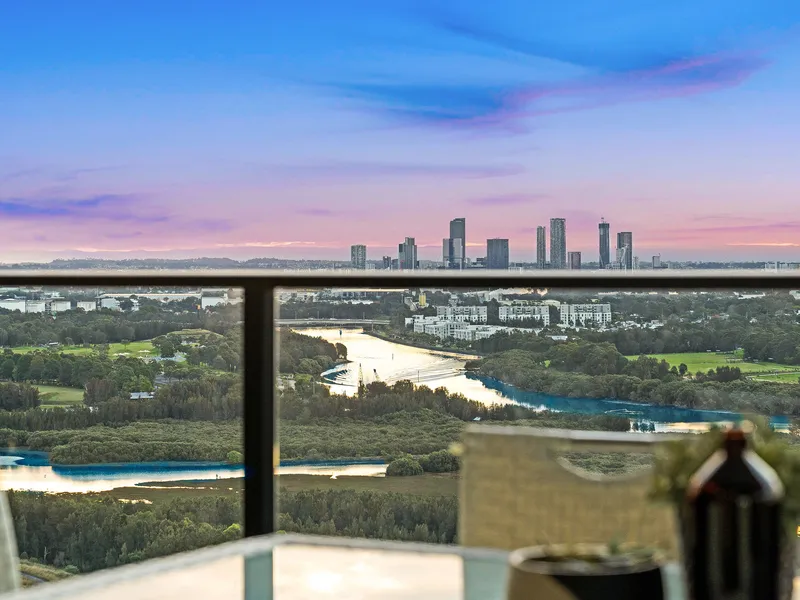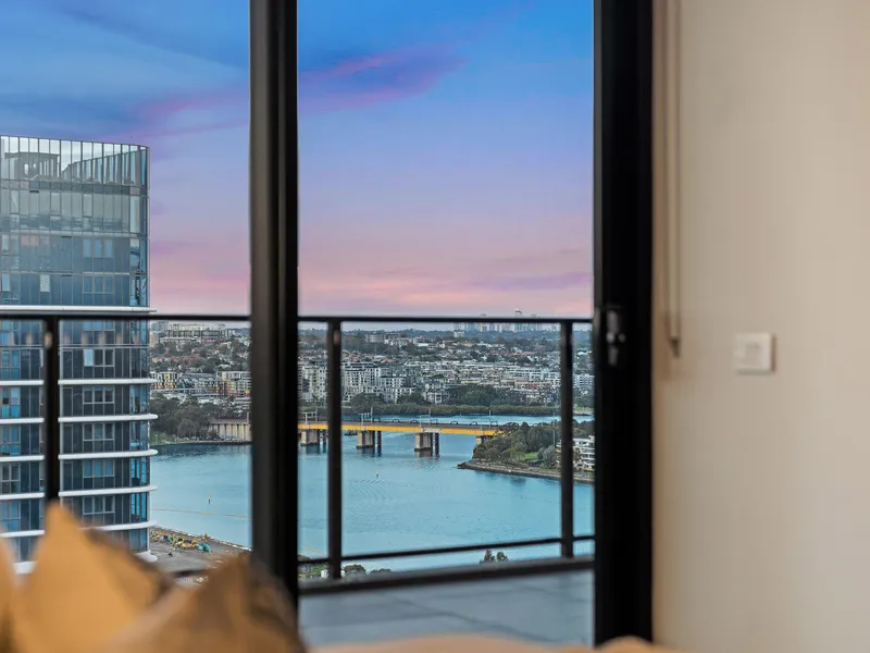 Perched on the 25th floor, this residence boasts 270-degree sweeping views encompassing the tranquil waterfront and the Parramatta skyline. Its prime North-facing orientation ensures abundant natural light throughout the day, while evenings reveal breathtaking sunset vistas.