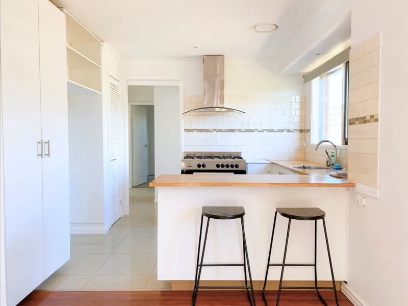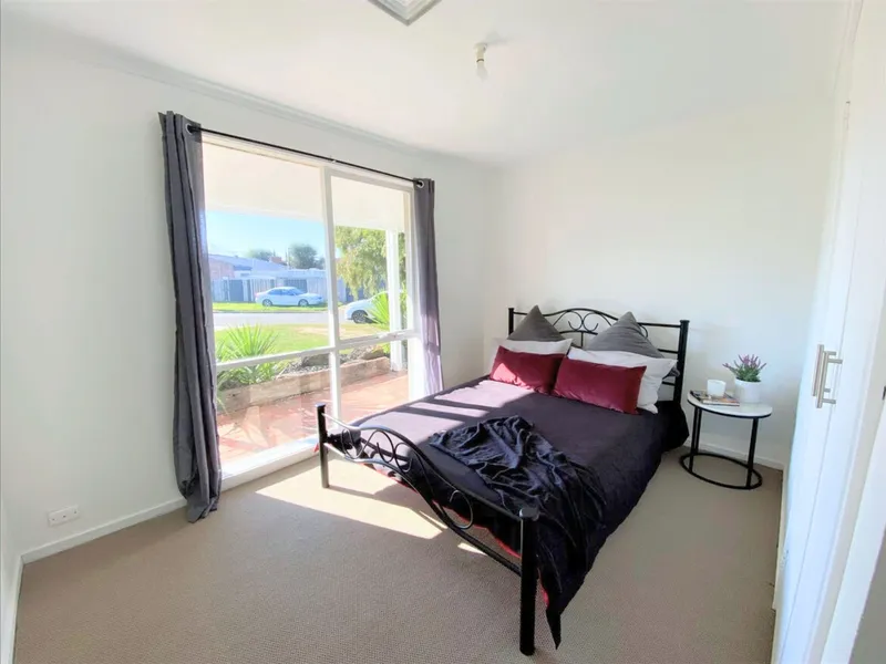 The spacious open-plan kitchen is a chef's dream, featuring stainless steel appliances, gas cooking, and a roomy pantry. The large lounge and family area seamlessly connect to the rear courtyard through sliding doors, creating an inviting space for relaxation and entertaining. The generously sized bedrooms come with built-in robes and plush wall-to-wall carpeting, while the central bathroom includes a separate toilet for added convenience.