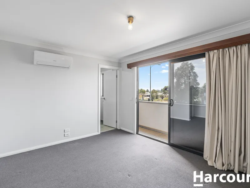 Upstairs, the master bedroom boasts a walk-in robe, ensuite, private balcony & split-system heating & cooling