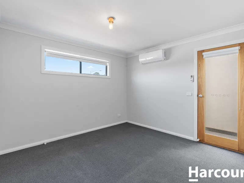 Two additional bedrooms include built-in robes (one with split-system heating & cooling) & are serviced by a central family bathroom