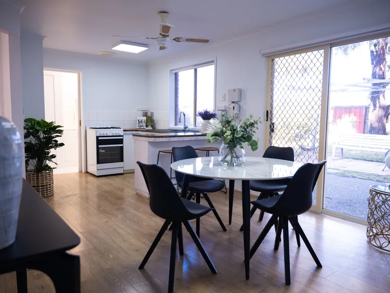 - Impressive Kitchen:Equipped with a gas cooktop, electric oven, ample cupboard space, and a clear bench overlooking the informal dining area.