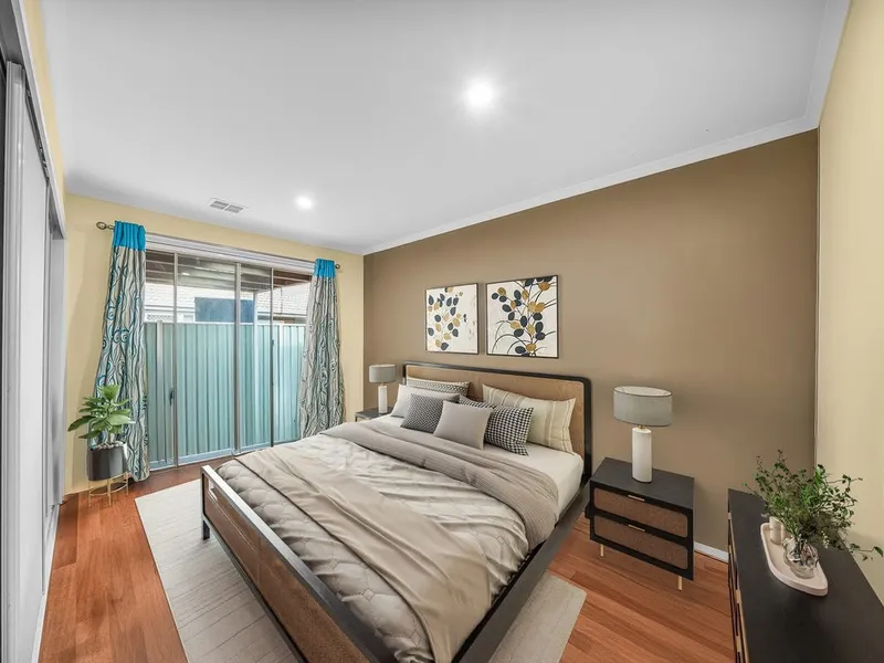 This property features 3 bedrooms, 2 bathrooms, and a carport. It includes ducted heating and cooling, plus two split systems for year-round comfort. The kitchen is equipped with a gas stovetop, oven, and dishwasher, and the home also features plantation shutters. An outdoor undercover seating area and storage shed provide additional functional space. The property is located close to Westgrove Primary School and Wyndham Central Secondary College.