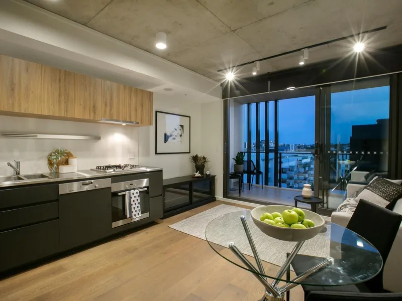 The open-plan living and dining area is filled with natural light, flowing seamlessly to the balcony, while the modern kitchen is equipped with a new induction cooktop, pyrolytic oven, and a Fisher & Paykel double drawer dishwasher, perfect for a comfortable everyday living.