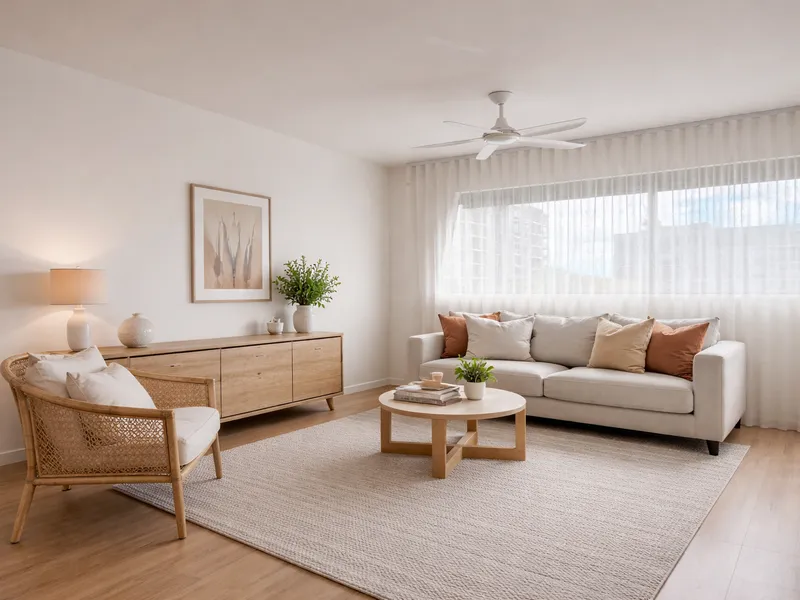 Air conditioning and ceiling fans in both bedrooms and the living area ensure comfort year-round.