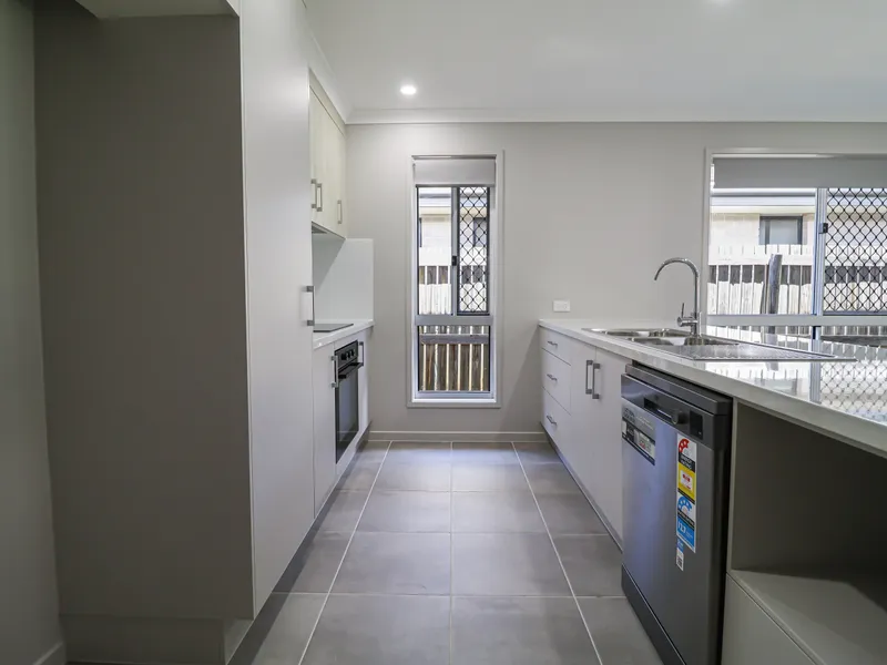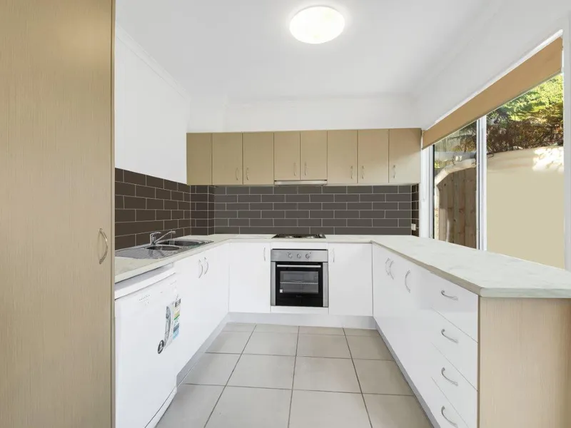 :: Kitchen with stone bench tops, electric cook top & dishwasher