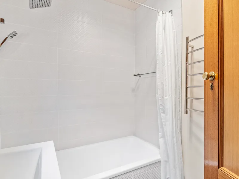 -Polished timber floorboards throughout the living areas and carpeted bedrooms.