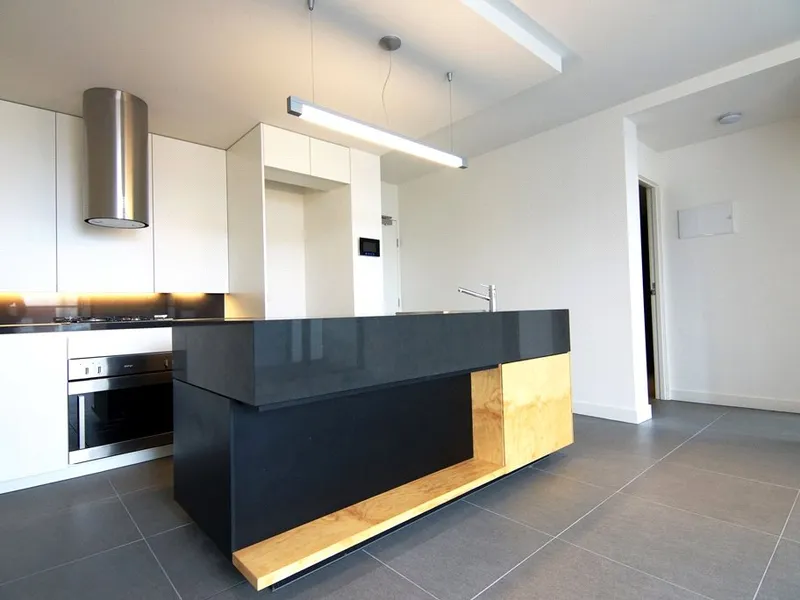 - Sleek designer kitchen with stone benchtops, stainless steel appliances, and generous storage