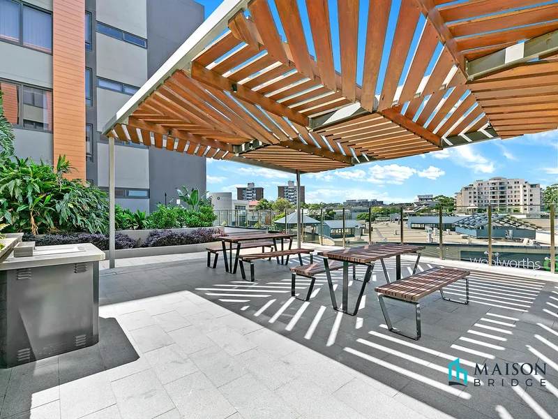 This immaculate one-bedroom apartment is perfectly positioned next to West Ryde Marketplace. Woolworths, Coles, local shops and restaurants are just downstairs. Within a minute's walk to West Ryde train station and bus stops. Minutes' drive to Top Ryde Shopping Centre and Rhodes Shopping Centre.