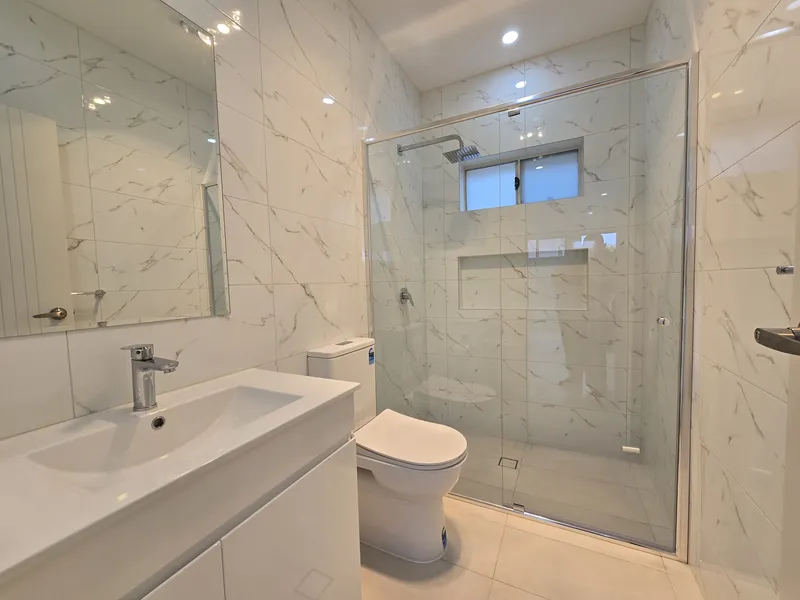 Main bathroom is fully tiled for easy maintenance and comes with shower and separate bathtub
