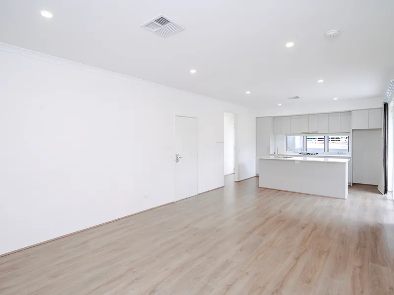 The home features a light-filled open plan kitchen, living and dining area, designed for both comfort and practicality. The kitchen offers ample storage and workspace, flowing seamlessly into the living area. All bedrooms are well-sized, with built-in robes, while the master includes its own ensuite for added privacy. A second bathroom services the rest of the home, making it ideal for families or shared living.