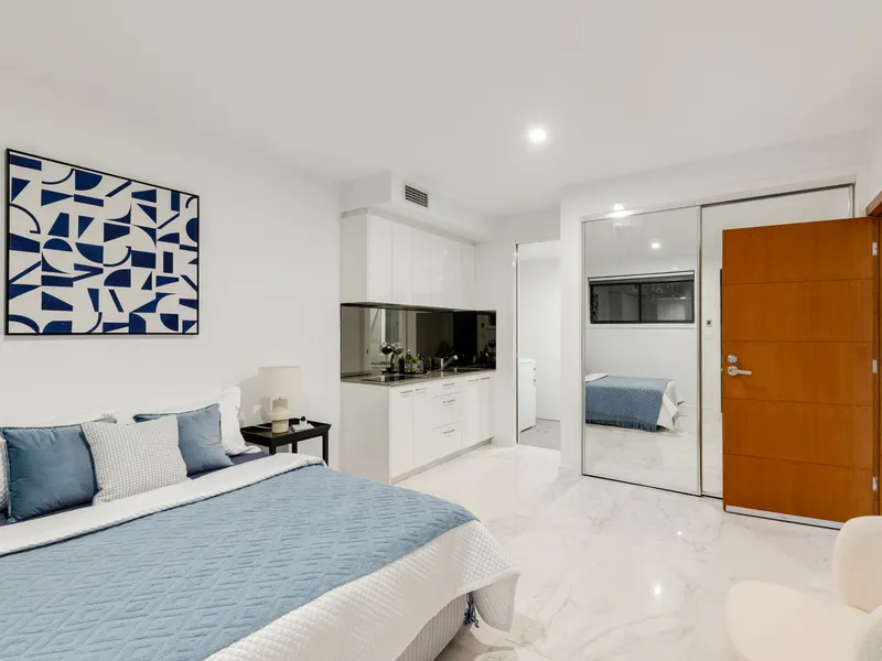 Downstairs adds exceptional versatility with a self-contained arrangement including one bedroom, private ensuite, kitchenette and separate living area. This setup is perfect for extended family, guests, teenagers or even a home office/business use (subject to approval).