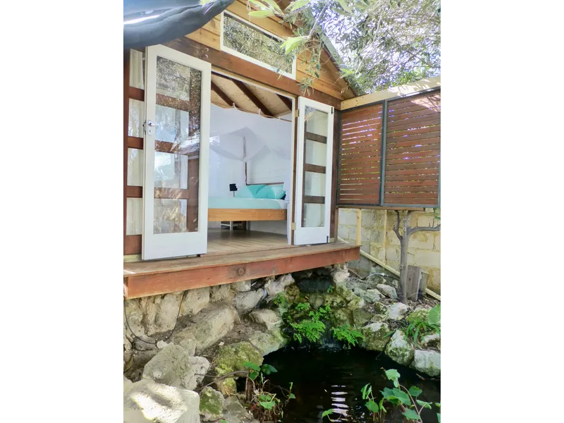 This stunning, fully furnished villa apartment is part of a large property in White Gum Valley however it has its own entrance, is completely self-contained and has its own enclosed garden complete with pond, a majestic waterfall and mature olive trees.