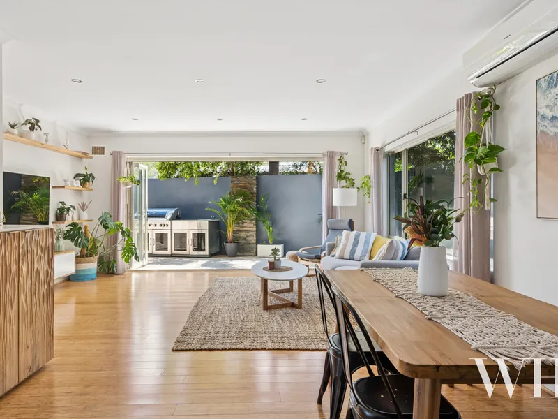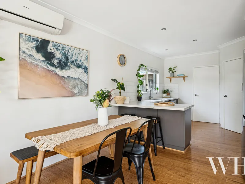 Upon arrival, the home is privately tucked behind secure gates, creating an immediate sense of comfort and seclusion. Inside, warm timber floors and soft natural light guide you through to the heart of the home - an open-plan kitchen, dining and living zone designed for effortless connection. The kitchen is both functional and inviting, with ample bench space and storage, seamlessly flowing into the living area and out through wide openings to the outdoor entertaining space.