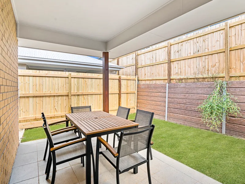 • Relaxing Alfresco Area: Furnished outdoor space with a ceiling fan, perfect for enjoying the low-maintenance backyard