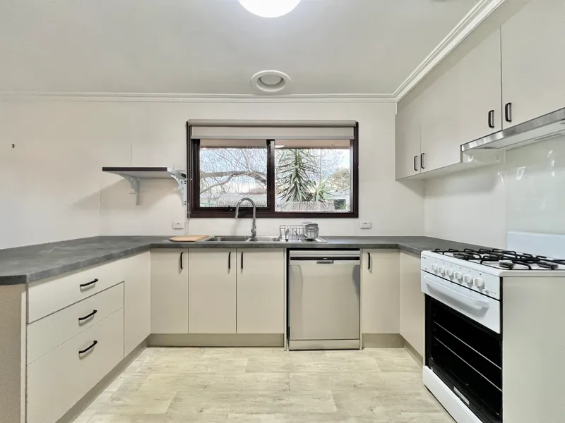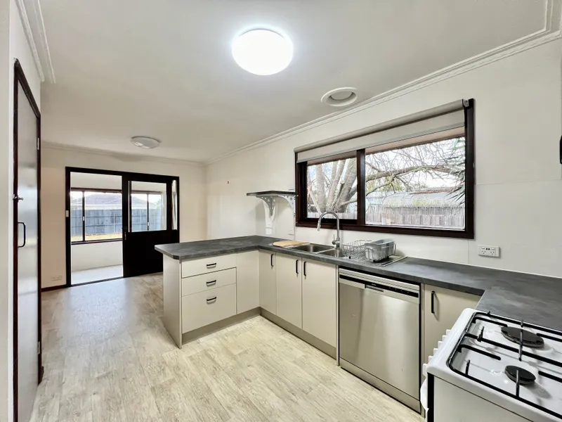 On entry, fresh light interiors create a welcoming ambience within. The main living area is positioned off the entrance and offers a spacious area to relax or entertain, complete with split system heating and cooling and an additional gas heater. This area flows effortlessly into the adjoining kitchen and meals area. The kitchen has been recently updated with brand new benchtops, dishwasher and free standing oven and cooktop with excellent storage.