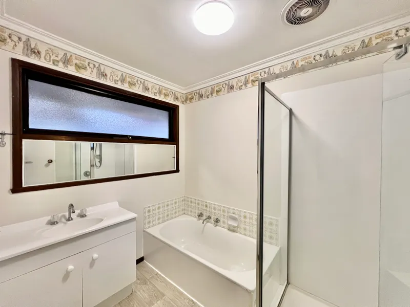 Comprising three bedrooms, two include built-in robes and are serviced by a bright central bathroom with bath, shower and separation toilet for great functionality.
