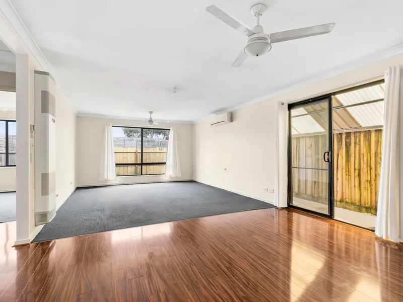 *Light-filled living room with split system for all year round comfort.