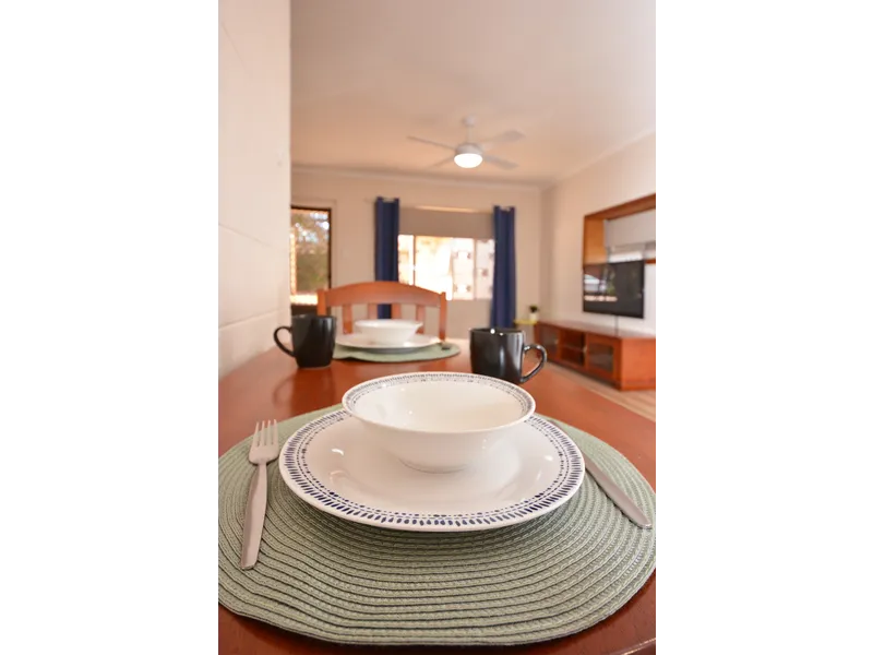 FURNITURE INCLUDES: 2 seater lounge suite, TV unit + TV, fridge/freezer, microwave, kettle, all cutlery & crockery, dining table & 2 x chairs, beds & linen, wardrobes, bedside tables, washing machine