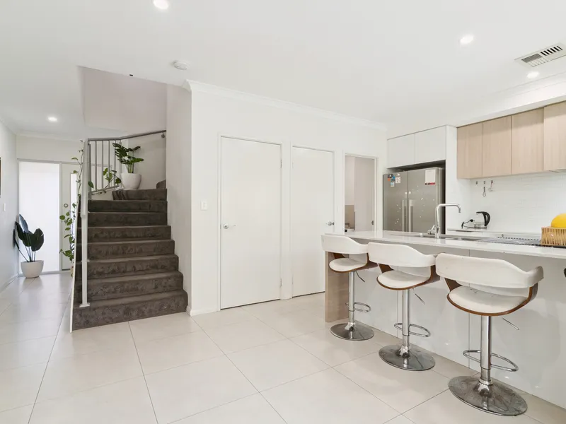 Through the front door, you are greeted with a lovely lounge room & dining area, perfect for relaxing after a busy day. The master bedroom is also to the front of the home, complete with ceiling fan, his & hers robes, and ensuite with shower, toilet and vanity.