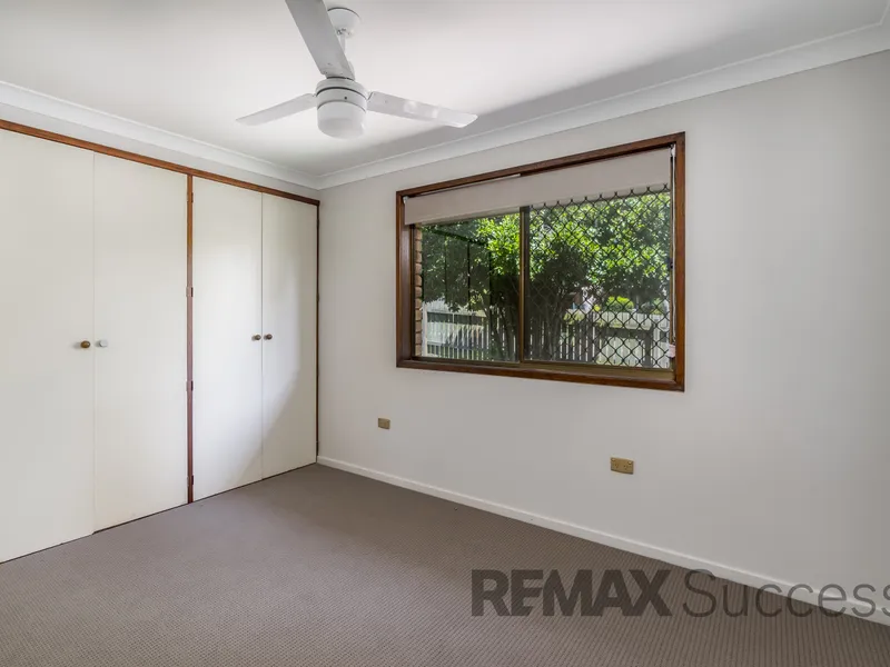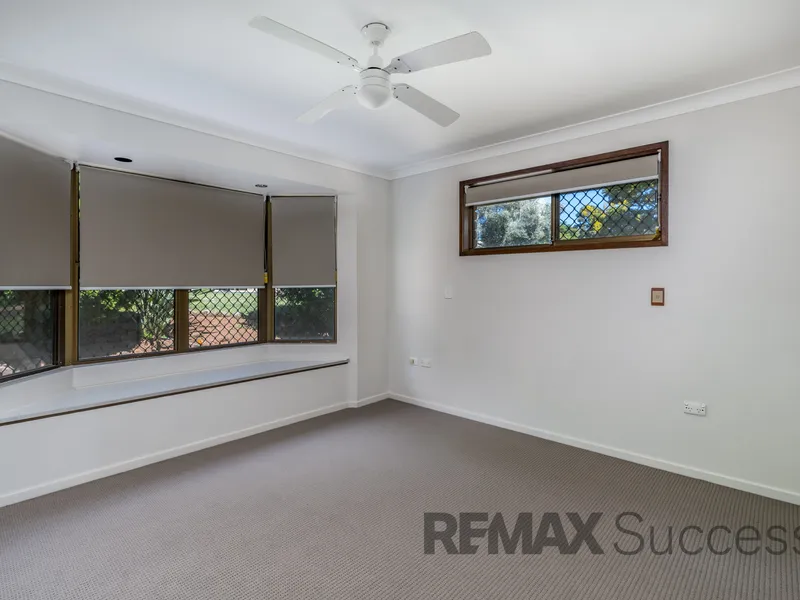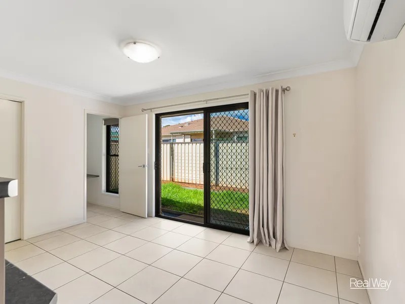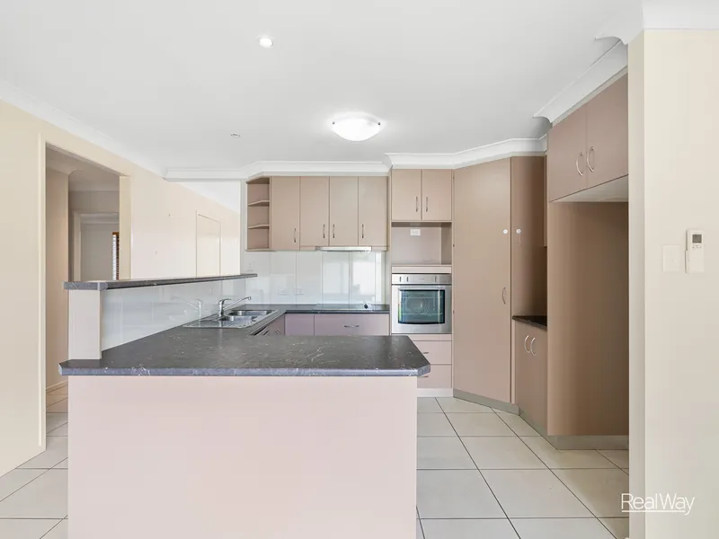 Inside, the home features four good sized carpeted bedrooms, each fitted with built-in wardrobes and ceiling fans for year-round comfort. The privately positioned main bedroom also includes air-conditioning and a built-in wardrobe, along with an ensuite hosting a shower over bath.