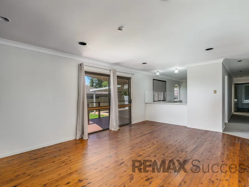 - Spacious family living area with polished timber flooring and ceiling fan, offering additional everyday living space and direct access to the outdoor deck