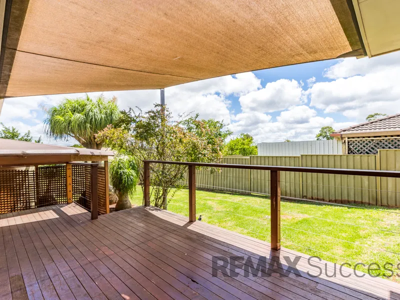Outside, the rear timber deck provides an ideal setting for outdoor dining and entertaining, overlooking the backyard. The fully fenced yard sits on a corner allotment and offers plenty of space for children and outdoor activities, with drive-through access providing additional convenience.