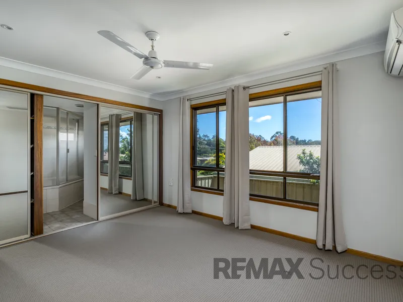 - Privately positioned main bedroom complete with ceiling fan, air-conditioning, built-in wardrobe and ensuite hosting a shower over bath