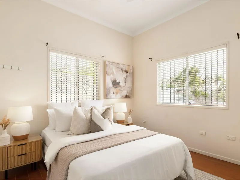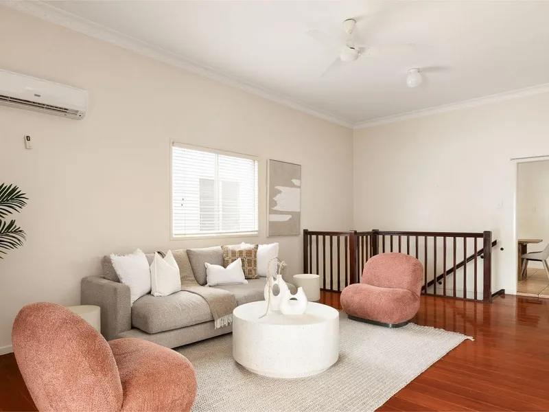 Positioned in a highly sought-after enclave on the fringe of Brisbane’s CBD, this spacious and multi-functional home showcases quality fixtures and fittings while capturing panoramic views of the Brisbane skyline. Tucked away in a quiet leafy street just 100 metres from Windsor Station, it offers an ideal lifestyle for busy professionals or small families. Step onto the back verandah to enjoy the beautiful city outlook before entering a bright open-plan living, dining, and kitchen area. Featuring polished timber floors and the home offers a welcoming and relaxed atmosphere with city views visible from the main living space. The kitchen includes quality appliances and generous cupboard storage.