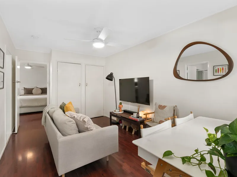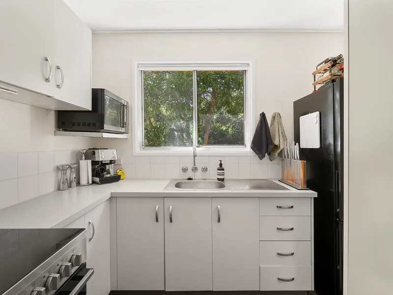 The open plan living and dining area is bright and airy, with large sliding doors letting in plenty of natural light and breezes. The kitchen is fully equipped with modern appliances and offers abundant storage options. The bedrooms are generously proportioned, each with built-in wardrobes, while the master bedroom boasts its own private ensuite bathroom.
