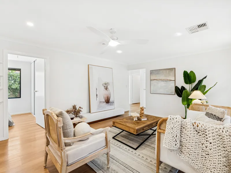 - Light-filled lounge room complete with ceiling fan