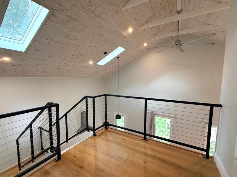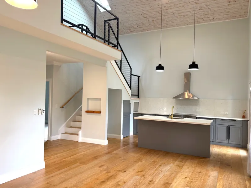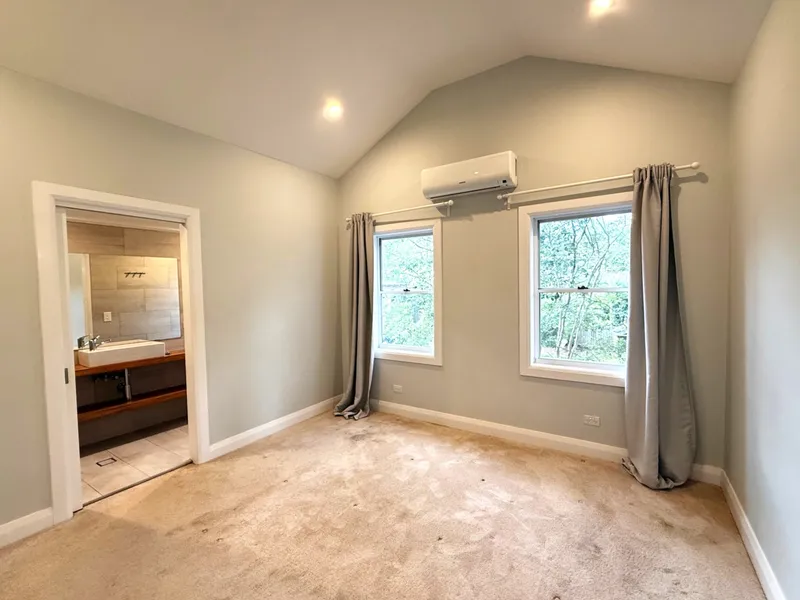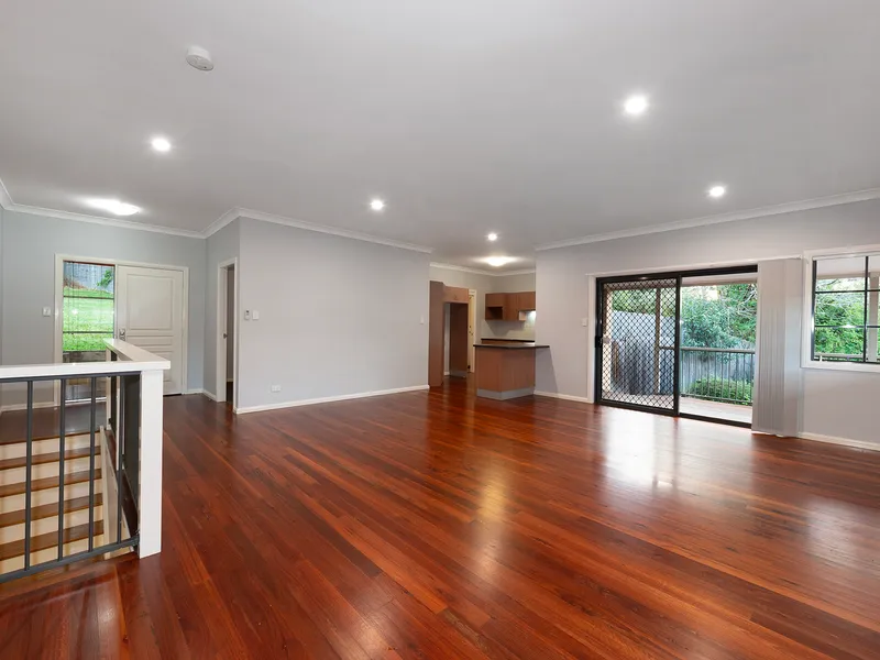 Set quietly at the rear of the block in a quiet battleaxe position, this home offers a calm and comfortable place to settle in, with a real sense of openness created by its high ceilings and exposed beams. The layout is spread over two levels, with the main bedroom and ensuite upstairs alongside the second bedroom, while the remaining two bedrooms are located on the ground floor.