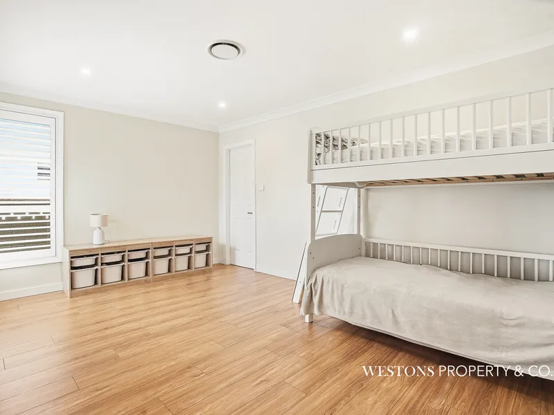 Complimented by fresh laminate flooring the separate living room flows seamlessly into a flexible family and dining area, complete with a study or play nook adjacent to the kitchen - perfect for kids activities or work from home.