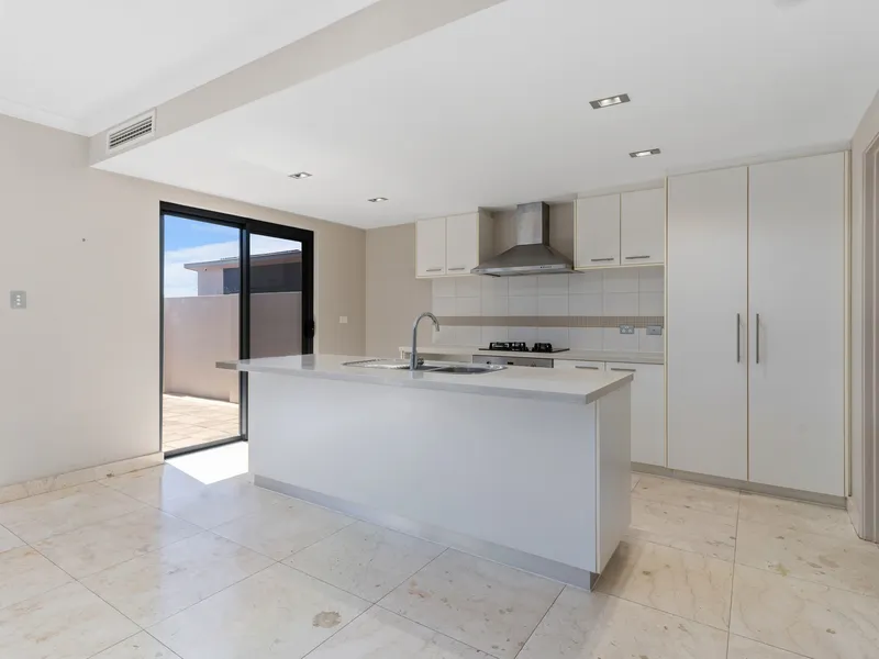 High raked ceilings enhance the kitchen and living zones, creating a bright and open feel throughout the home.