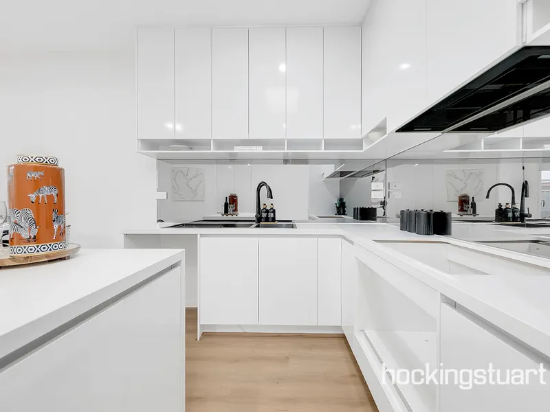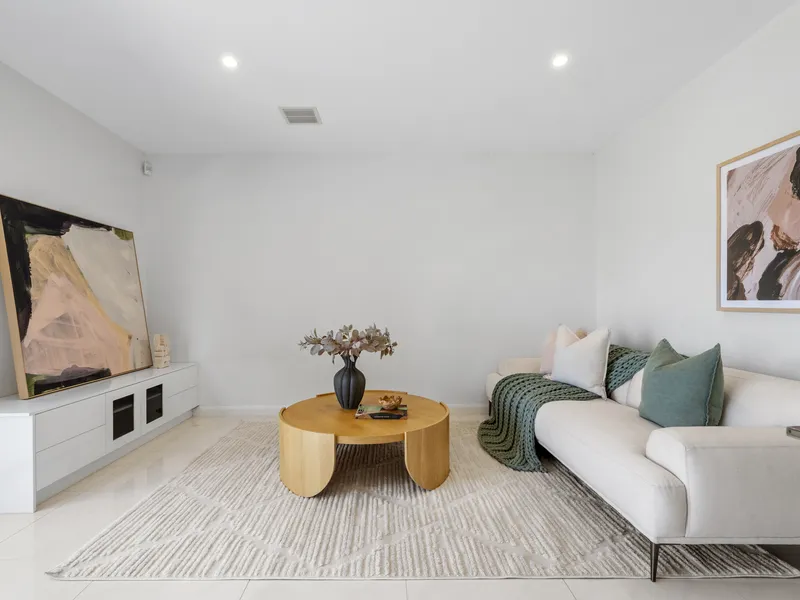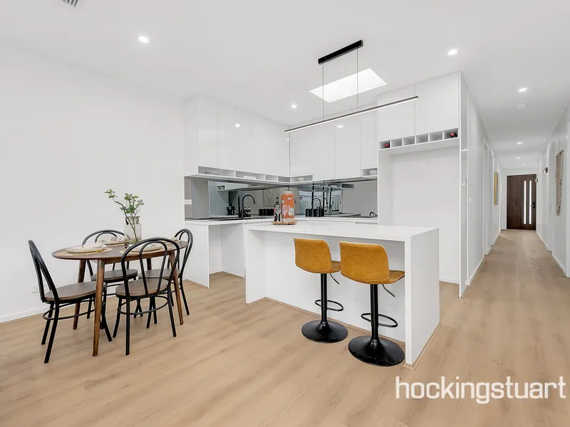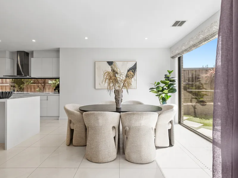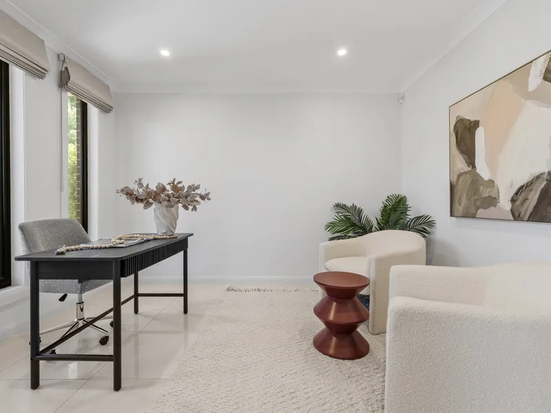 A striking rendered façade sets the tone, welcoming you into an interior defined by space, natural light and refined finishes. Upon entry, a dedicated home office provides the ideal work-from-home environment, while a stunning stairwell leads to the private accommodation upstairs. The ground floor unfolds into a beautifully connected living domain, where the family, kitchen and formal dining areas flow seamlessly together, creating the perfect space for both relaxing and entertaining.