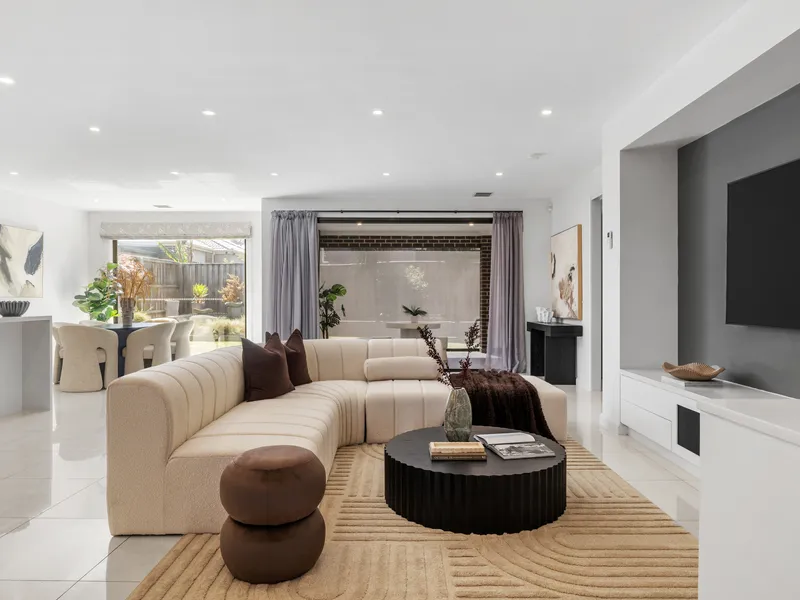 At the heart of the home, the kitchen showcases stone benchtops, premium appliances and a well-appointed butler's pantry, all designed to cater to effortless day-to-day living. A fitted cinema room adds another layer of luxury, while the adjoining alfresco area features a full outdoor kitchen and all-weather coverage-perfect for year-round entertaining alongside a low-maintenance yard.