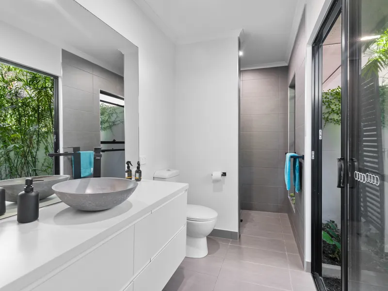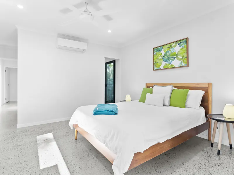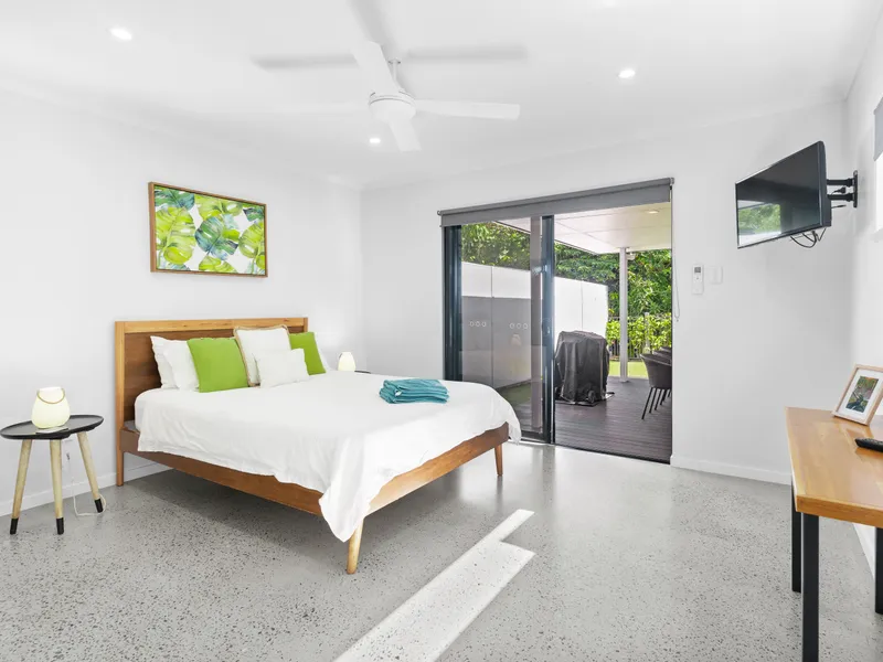 - Master Suite: Queen bed, ensuite with garden courtyard, walk-in robe, TV, air conditioning