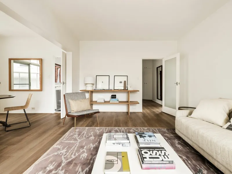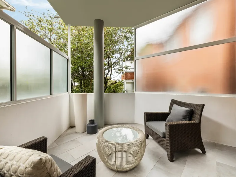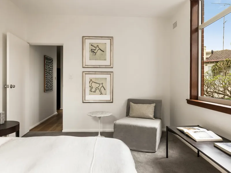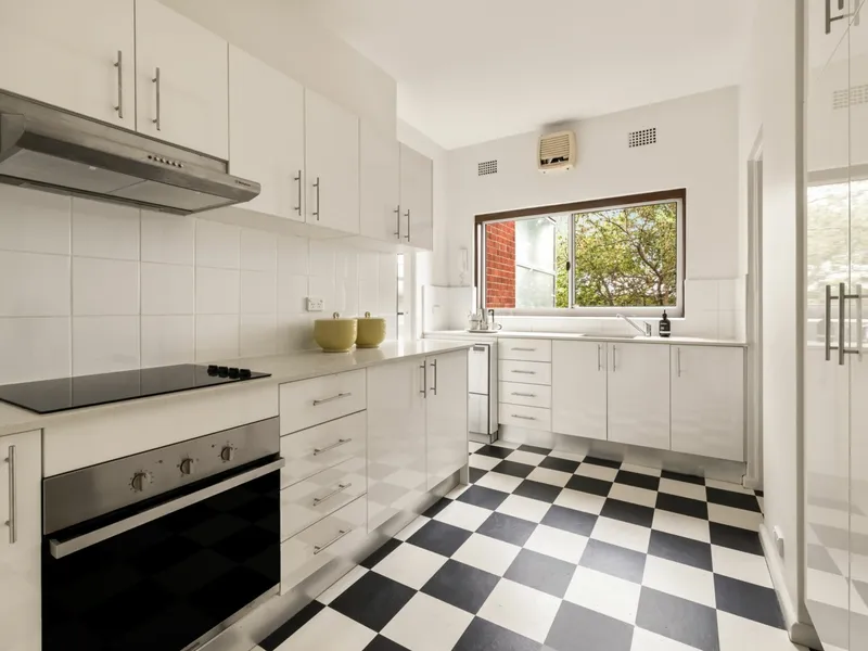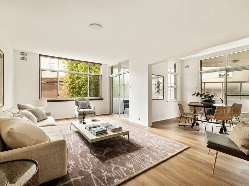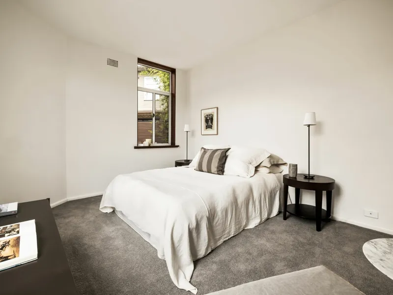 Peacefully tucked away to the rear of a boutique block of eight with access via Greycairn Place, this solid apartment impresses with an incredibly spacious floorplan combined with abundant natural light and modern additions in a coveted Woollahra address.