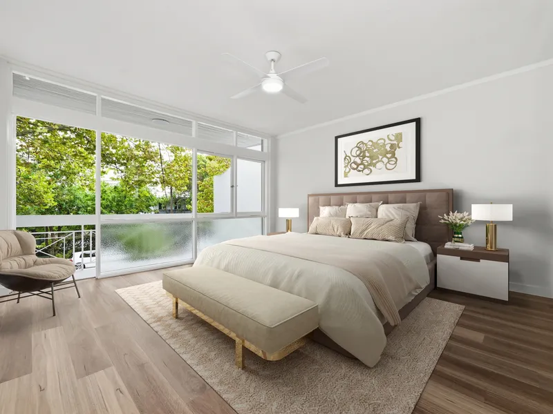 - Front-facing bedroom boasting a private, sunlit balcony overlooking the leafy streetscape