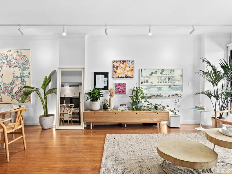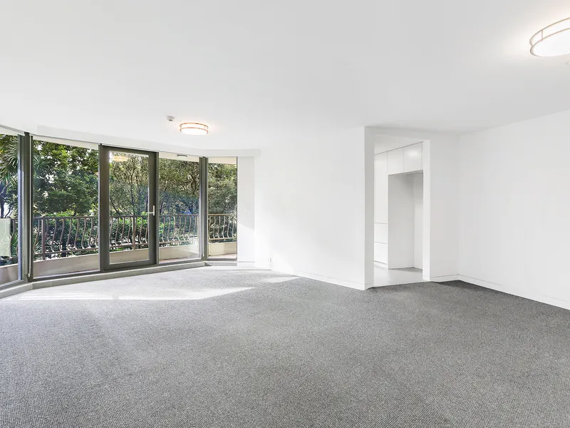 Combined lounge/dining which flows onto large balcony with views of Cook Phillip Park and the City skyline.