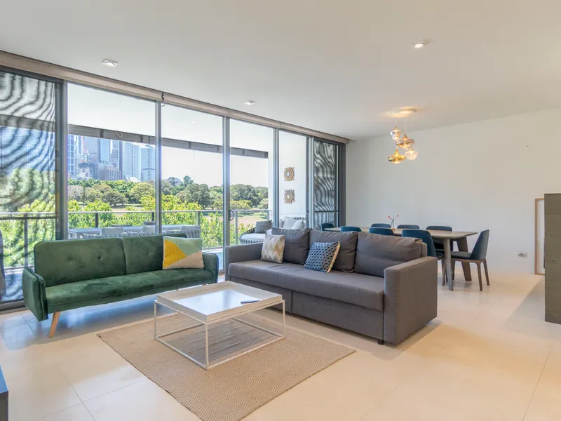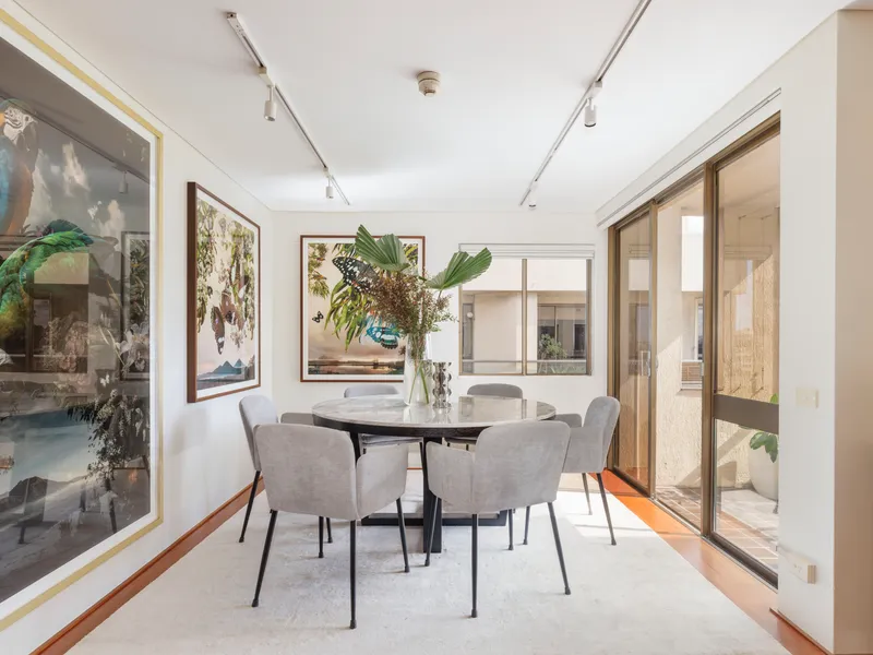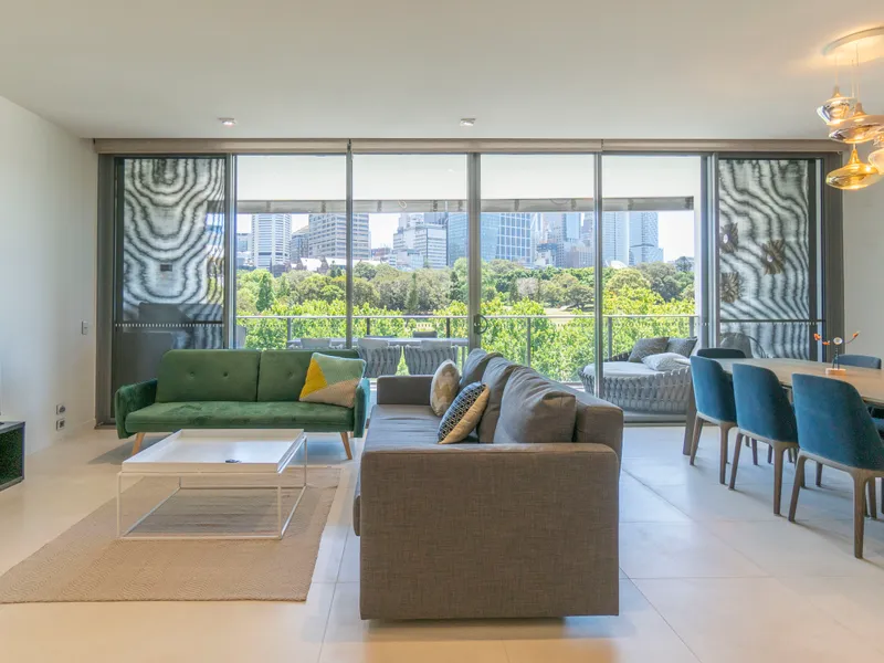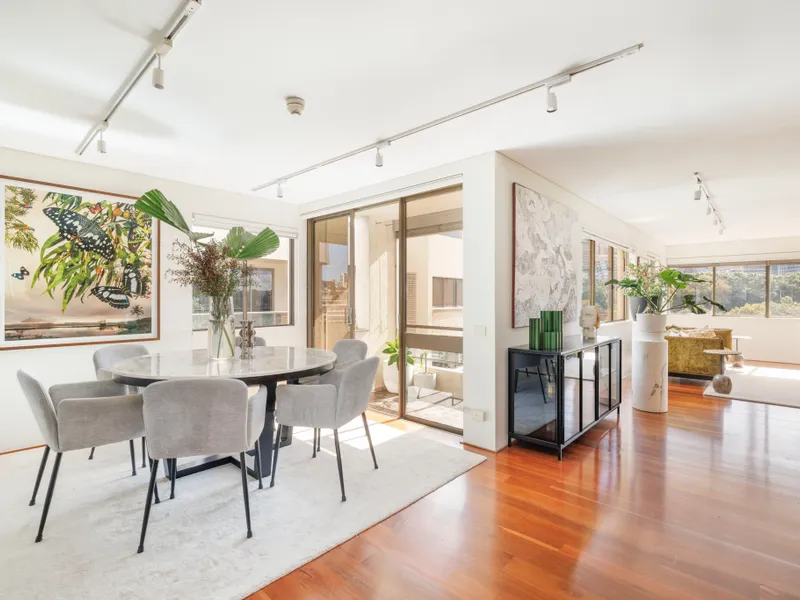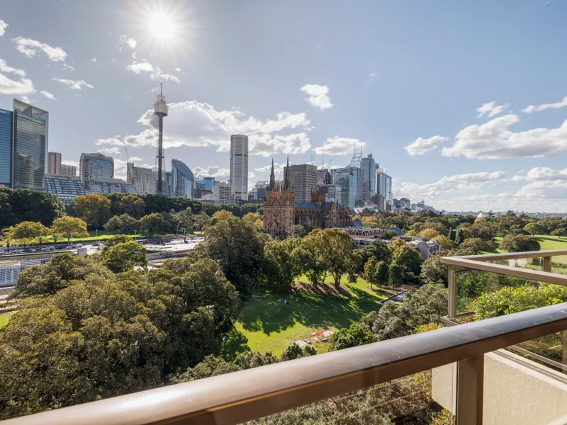 One of the premier residences in 'Park Lane Towers', this three-bedroom penthouse has house-like scale and outstanding Sydney vistas over Domain parklands, St Mary's Cathedral, and out to the CBD skyline and harbour. Elegantly appointed with plenty of custom joinery in warm timber tones, it's a luxurious package on the edge of the CBD.