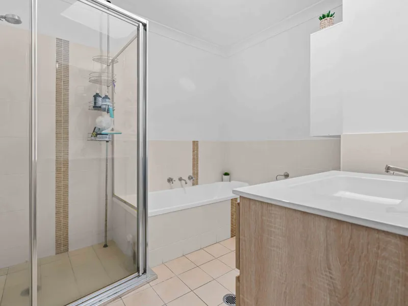 All three bedrooms feature built-in wardrobes, while the well-appointed kitchen includes a dishwasher and generous storage. The open-plan living and dining area flows effortlessly to a private courtyard, creating the perfect space to relax or entertain.