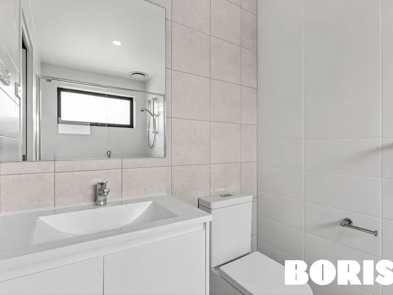 This spacious and light filled apartment overlooks the village green and has easy ground floor access. The long galley kitchen has loads of storage and the living area is large, and flows out onto the balcony which overlooks the Green. Both bedrooms are of good size proportions with excellent storage. Both luxury bathrooms are sure to please, and there is a large euro laundry off the living area.